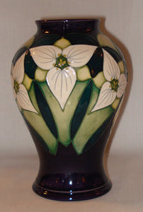 Completely hand made and decorated in England, designed by Nicola Slaney as an exclusive to Hockridge China to celebrate the 103 anniversary of the store. The piece has white Trilliums the flower of Ontario on an Amethyst background the gemstone of Ontario. Height 6".